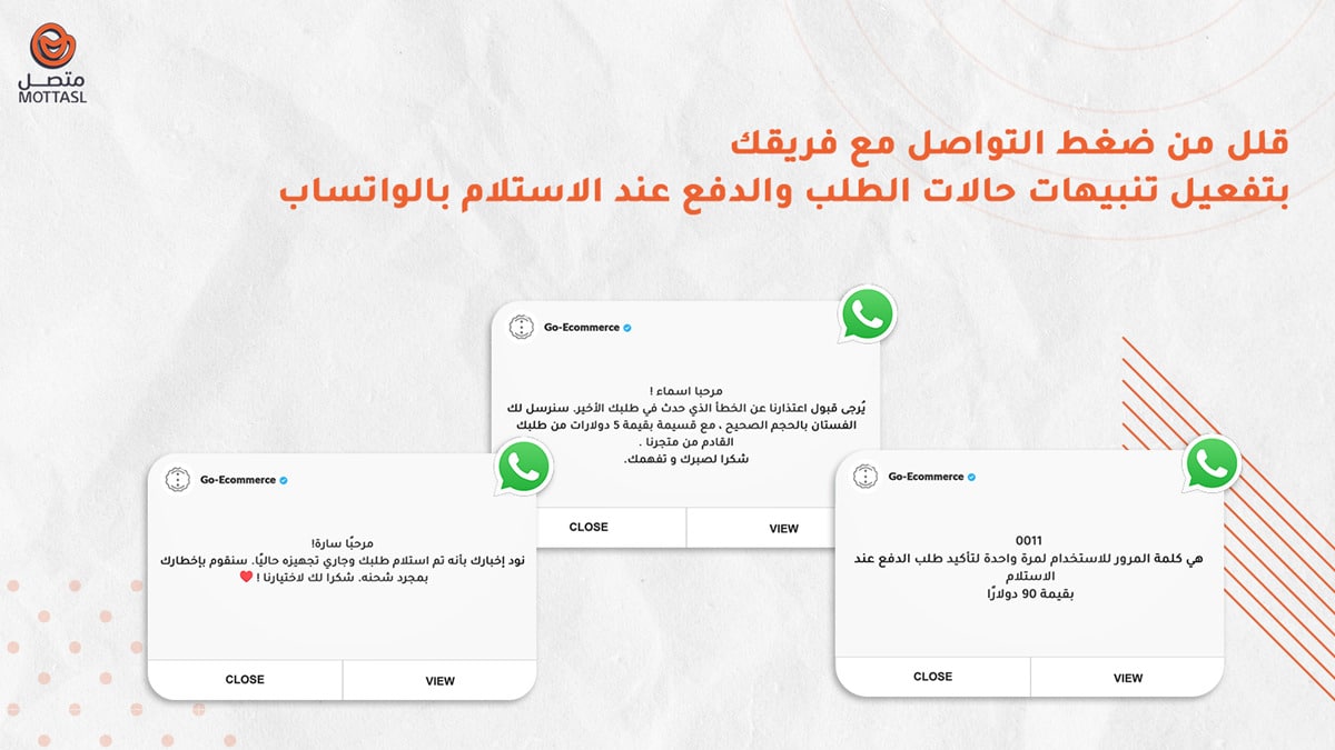 - تحديثات حالة الطلبات على الواتساب
