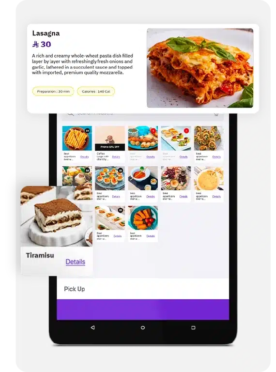 يسمح للويتر باستعراض المنيو بأكملها وتسجيل تفاصيل الطلب وإجراء التعديلات بسلاسة أثناء أخذ الطلب