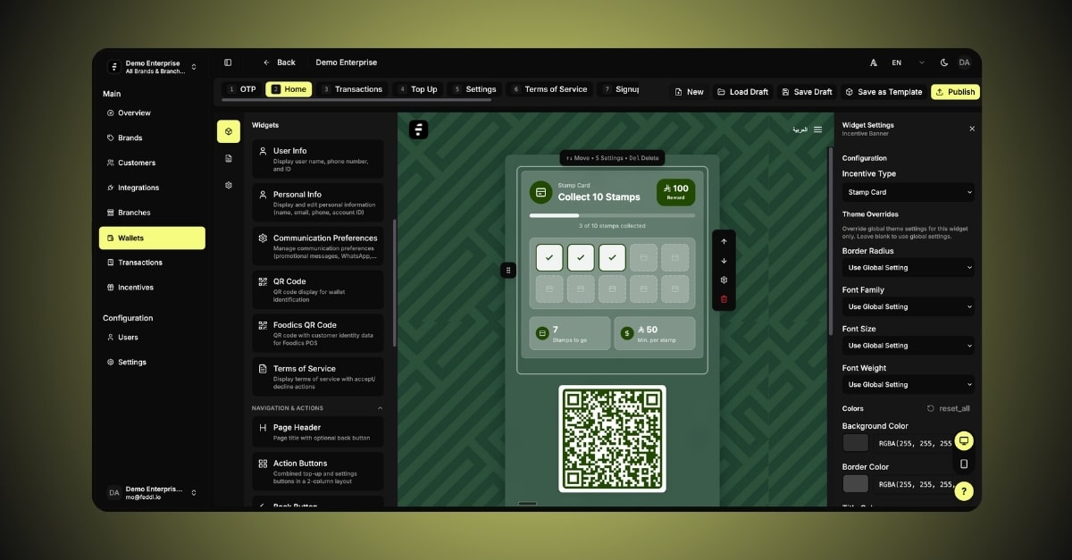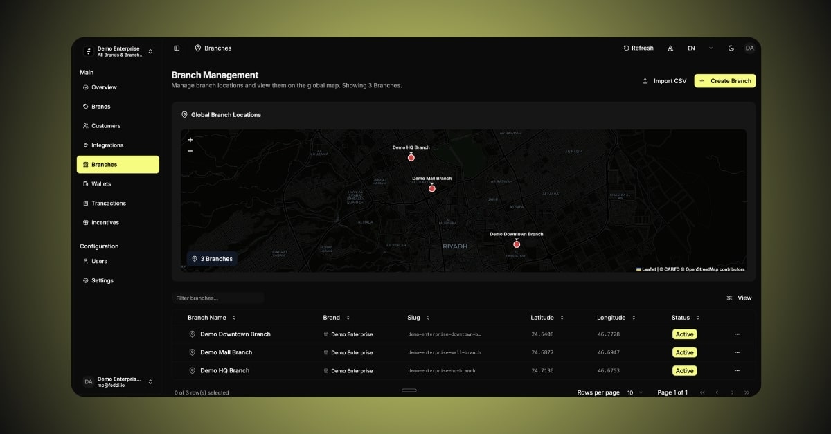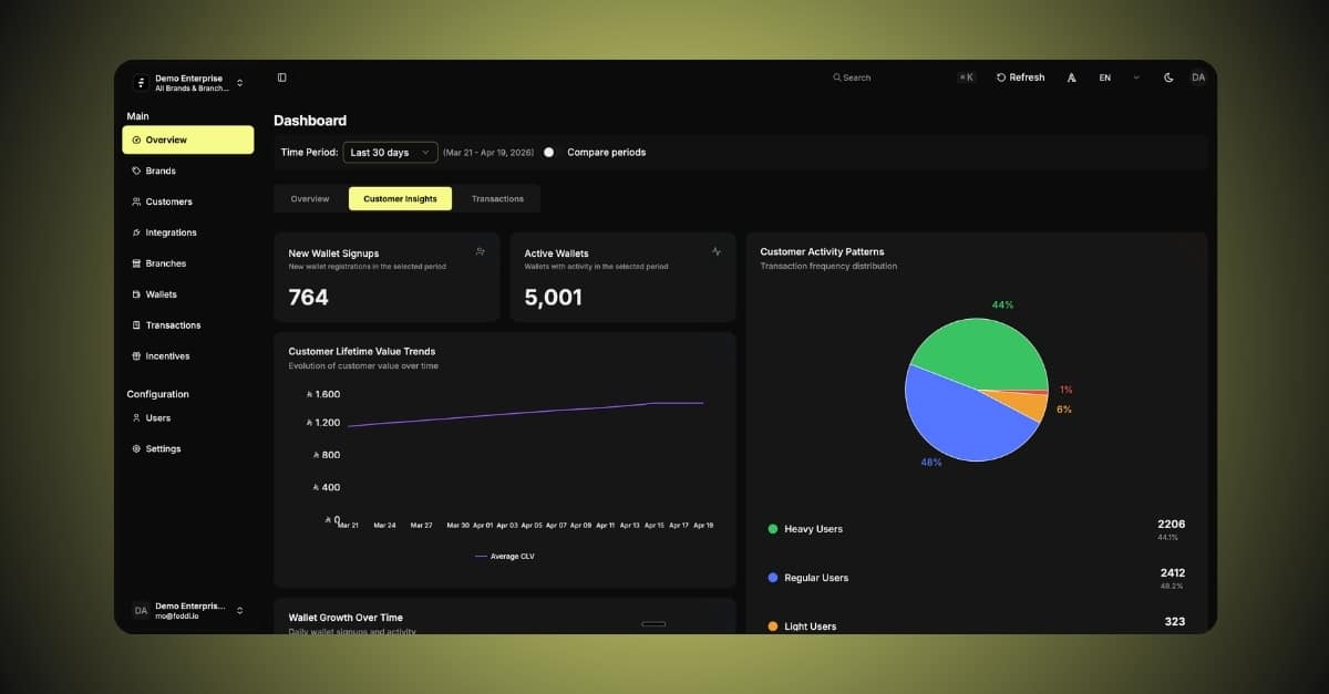 Wallet infrastructure for multi-branch F&B brands.