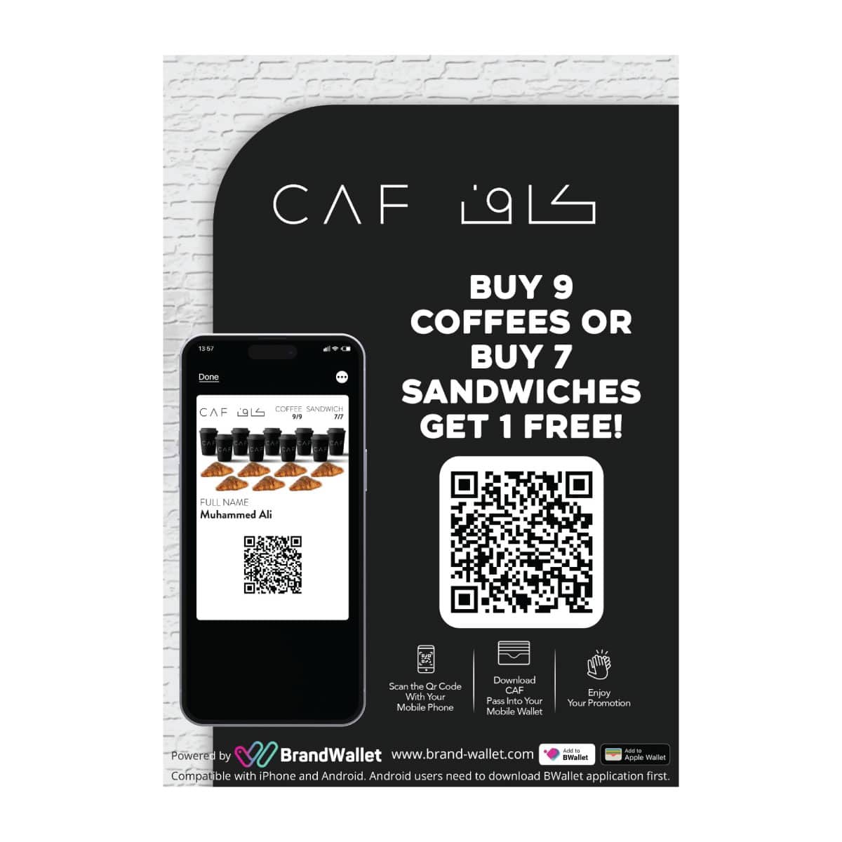 بينما تهتم أنت بإدارة شركتك، فإننا نهتم بالولاء الرقمي في كل جانب. نحن نصمم بطاقاتك الرقمية، ونقوم بإعداد النظام، والأكثر من ذلك أننا نعتني بخيام طاولتك من أجل الترويج الخاص بك!