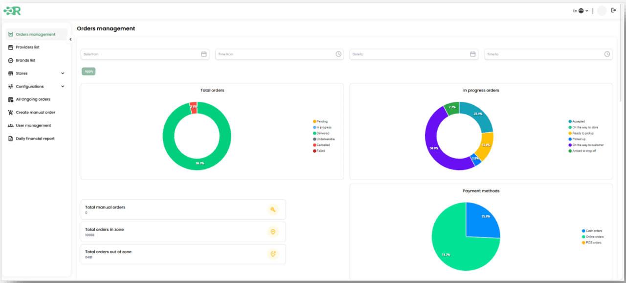 نعمل كمنصة قوية تربط بين المطاعم والمندوبين ومزودي خدمات التوصيل لضمان عمليات توصيل سلسة وفعّالة دون أي تعقيد