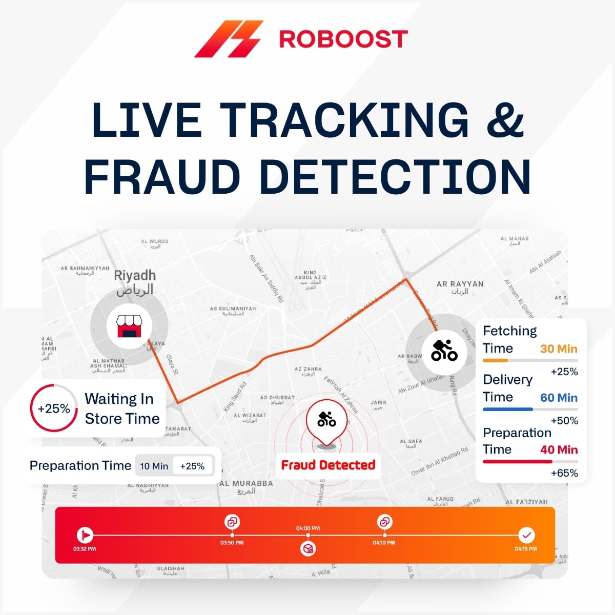 - يقوم النظام تلقائيًا بتعيين المندوب الأنسب، وتحسين المسارات لضمان السرعة والطعام الطازج، مع ضمان التحكم الكامل من خلال اكتشاف الاحتيال المدعوم بالذكاء الاصطناعي ونطاقات التوصيل الجغرافية.
