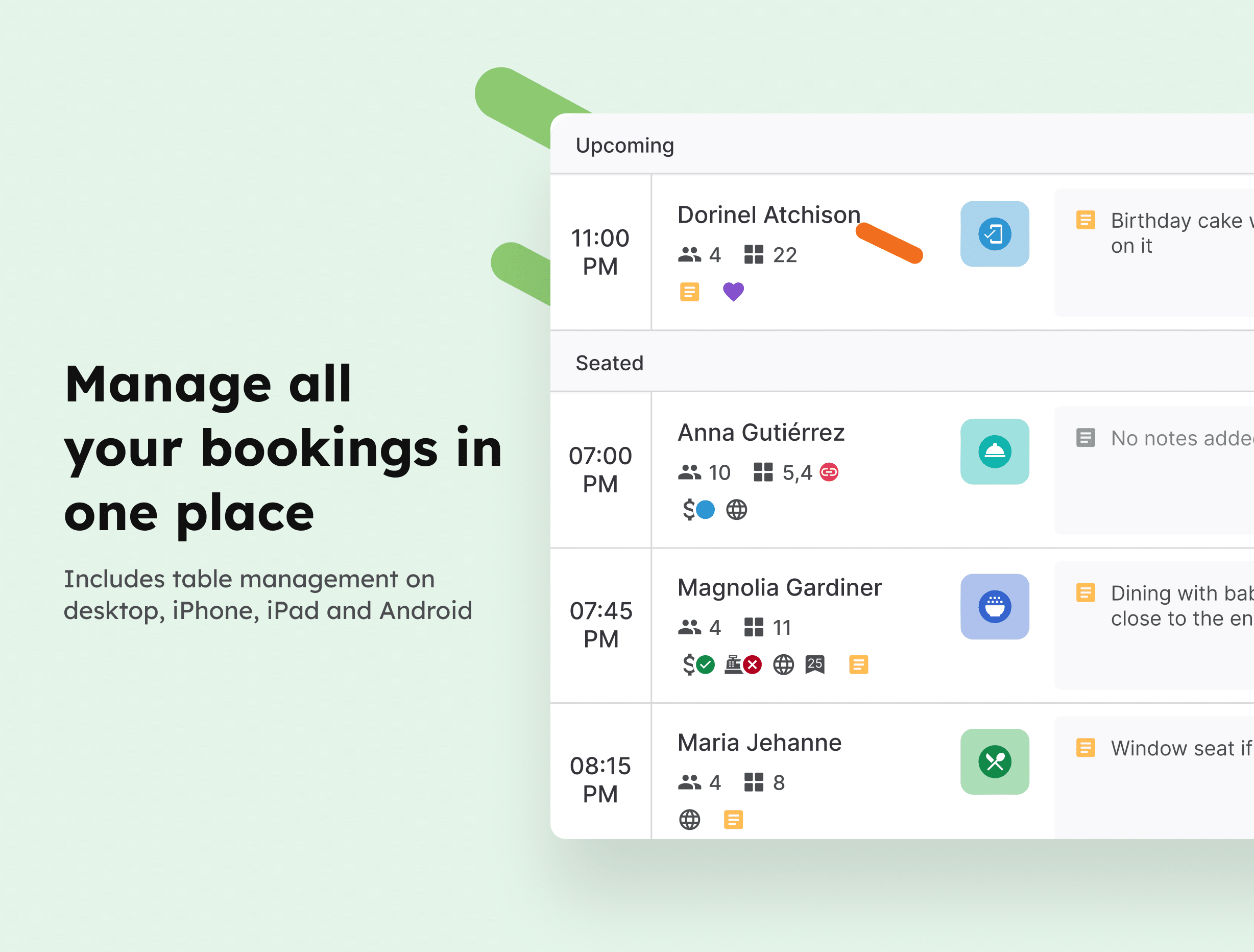- إدارة فعالة للطاولات للتحكم في توفرها وإدارتها بأحسن ما يكون، وتشغيل المزيد من الطاولات وزيادة الإيرادات.