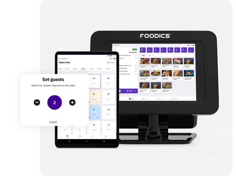 عرض جميع الطاولات بوضوح للاختيار من بينها وإدخال عدد الضيوف واستقبال الطلبات