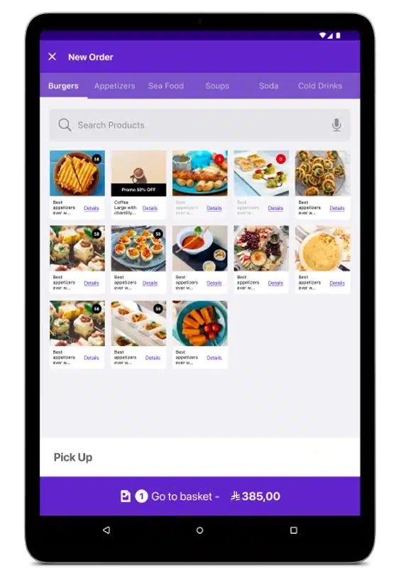 يسمح للويتر باستعراض المنيو بأكملها وتسجيل تفاصيل الطلب وإجراء التعديلات بسلاسة أثناء أخذ الطلب