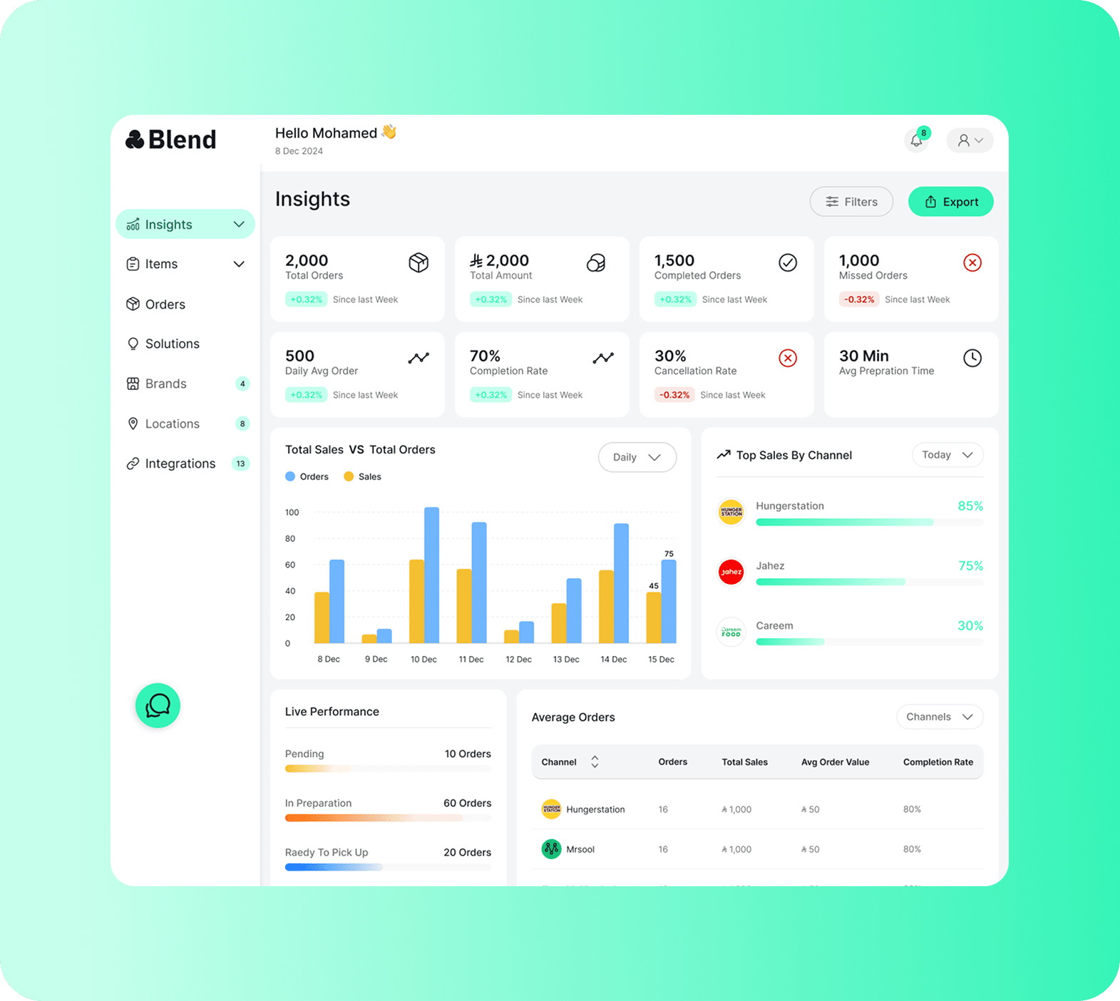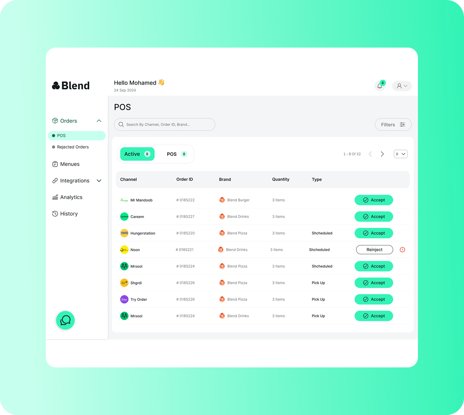 By integrating Kitchefy with Blend, you can receive delivery app orders directly on your POS system at the branch through Kitchefy. This allows you to manage and track your orders seamlessly, without the hassle of using multiple devices.