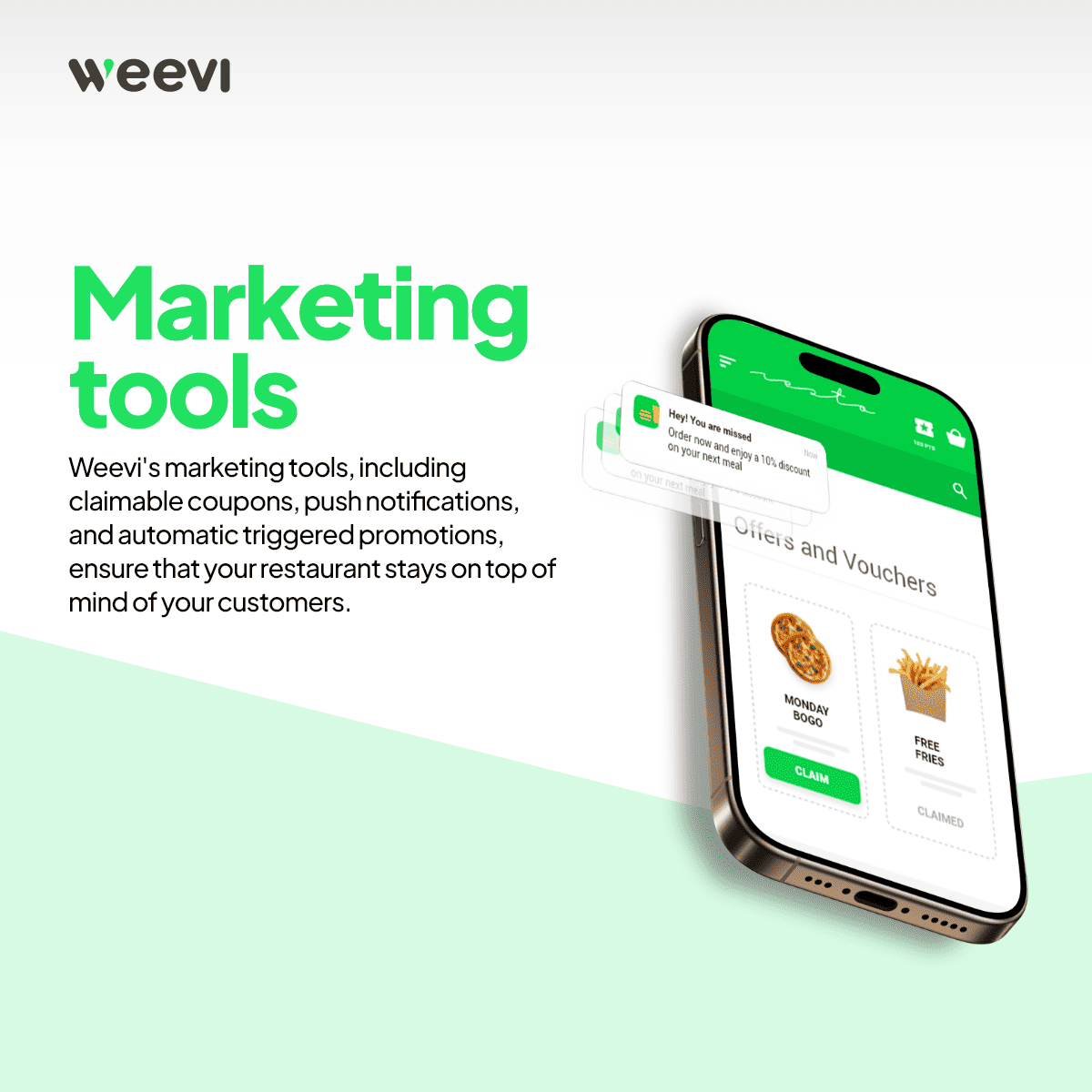 Beyond ordering, Weevi includes built-in marketing, upselling, and loyalty tools to increase basket size, retain customers, and turn them into brand advocates. Whether managing one branch or fifty, Weevi scales effortlessly and syncs all online orders directly to your Kitchefy POS.